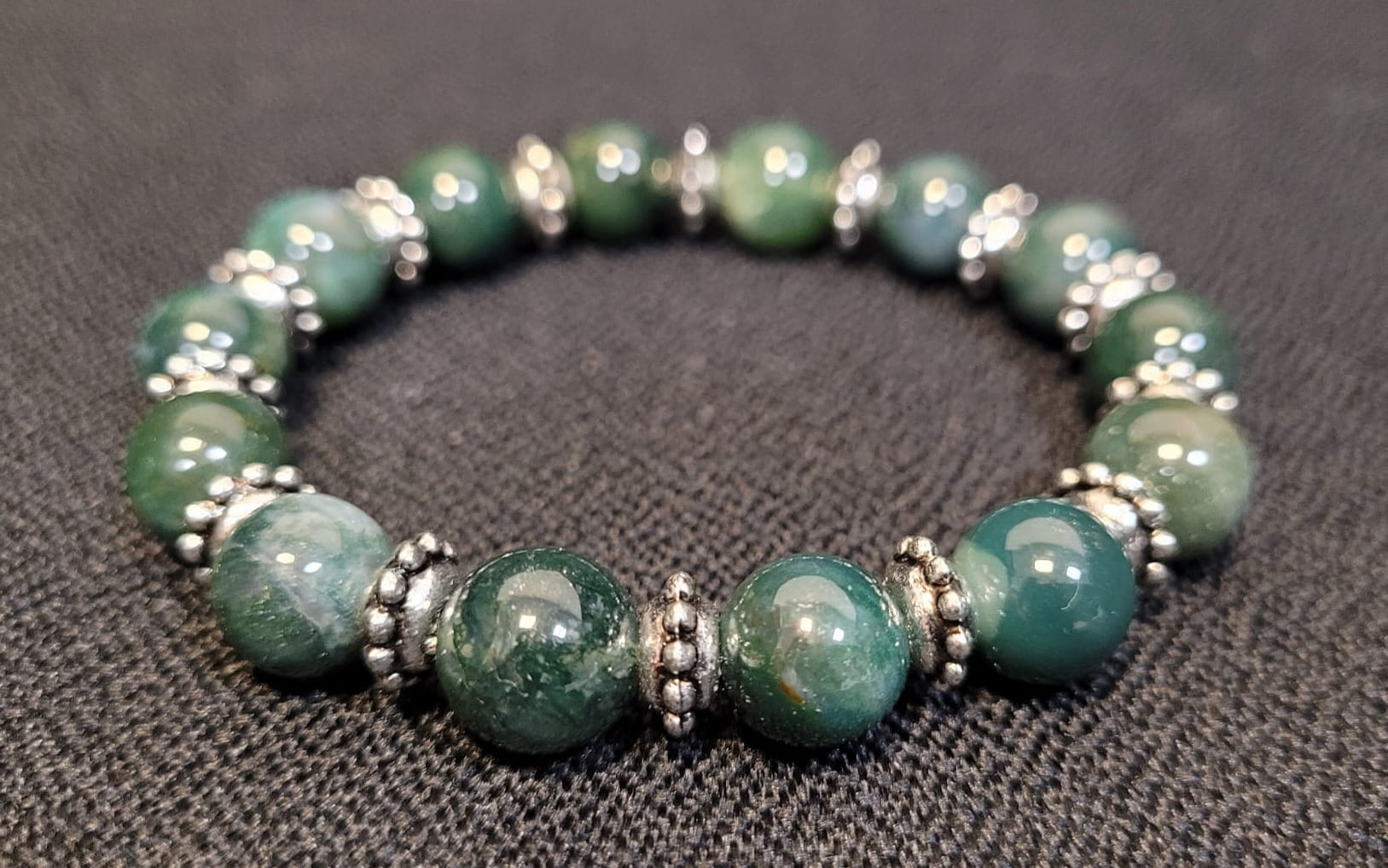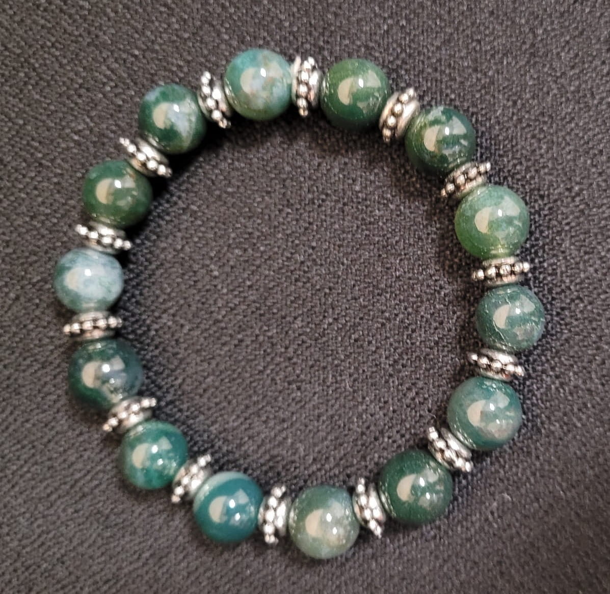 Ręcznie wykonana bransoletka z agatu mszystego.