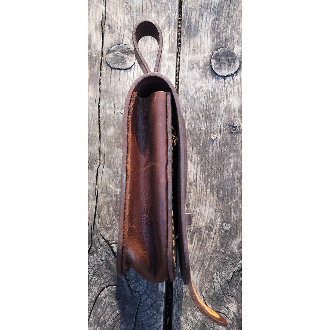 - Sakwa wykonana jest z wysokiej jakości garbowanej roślinnie bydlęcej skóry, zafarbowana odpowiednimi garbnikami i zaimpregnowana dla uzyskania odporności na odbarwianie oraz czynniki atmosferyczne