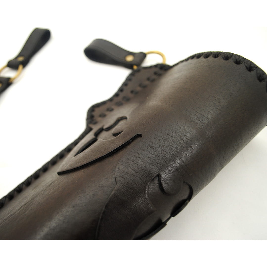 - Kołczan ten jest efektem ręcznej pracy z wykorzystaniem wytrzymałej, naturalnej skóry