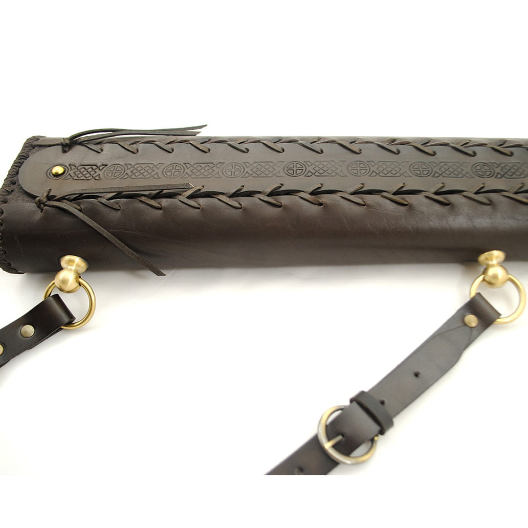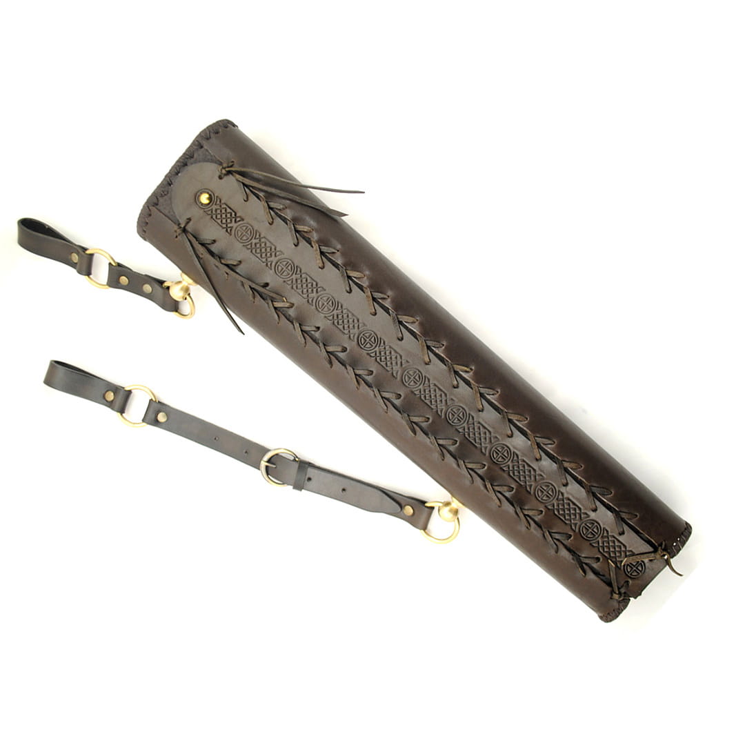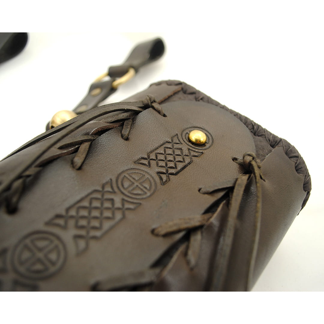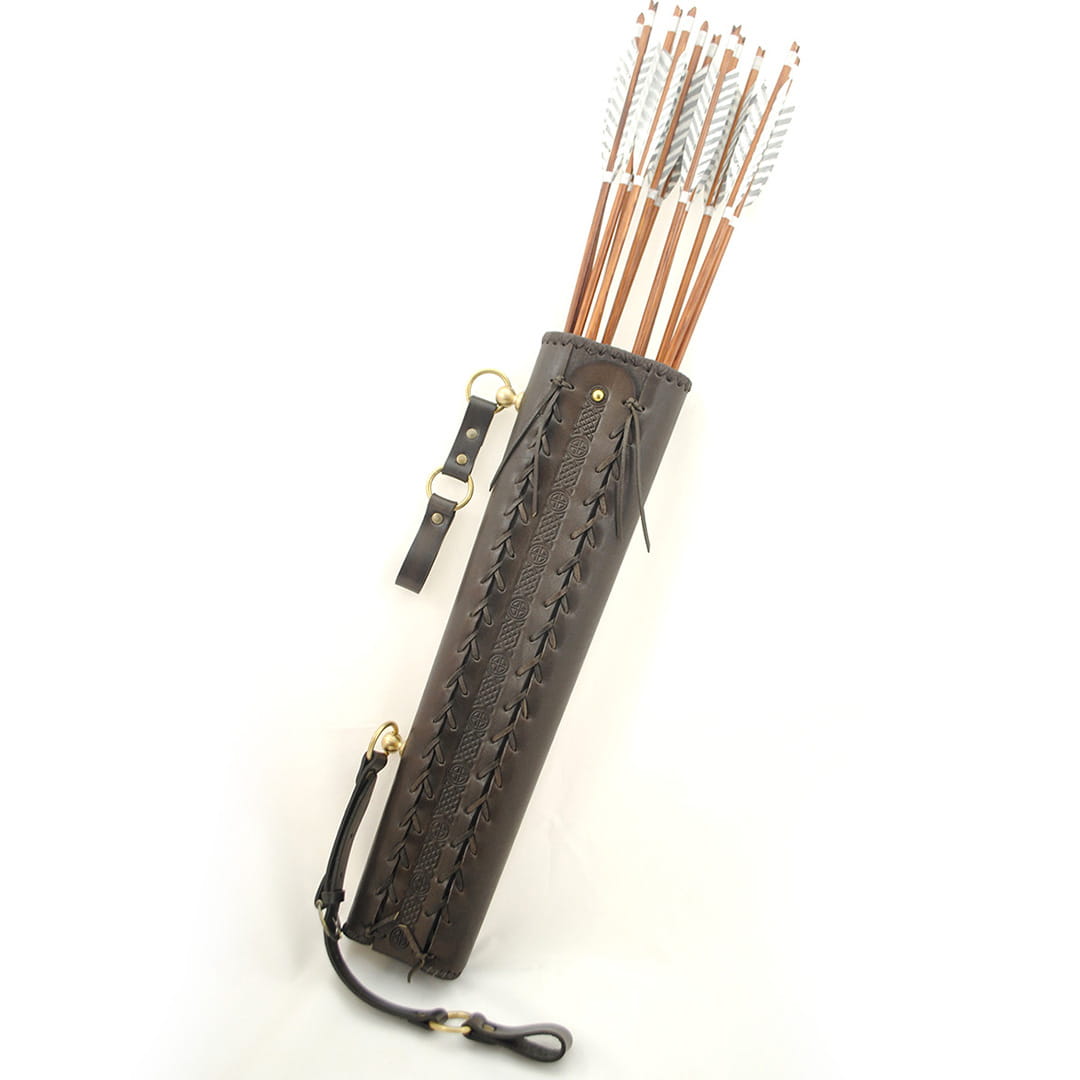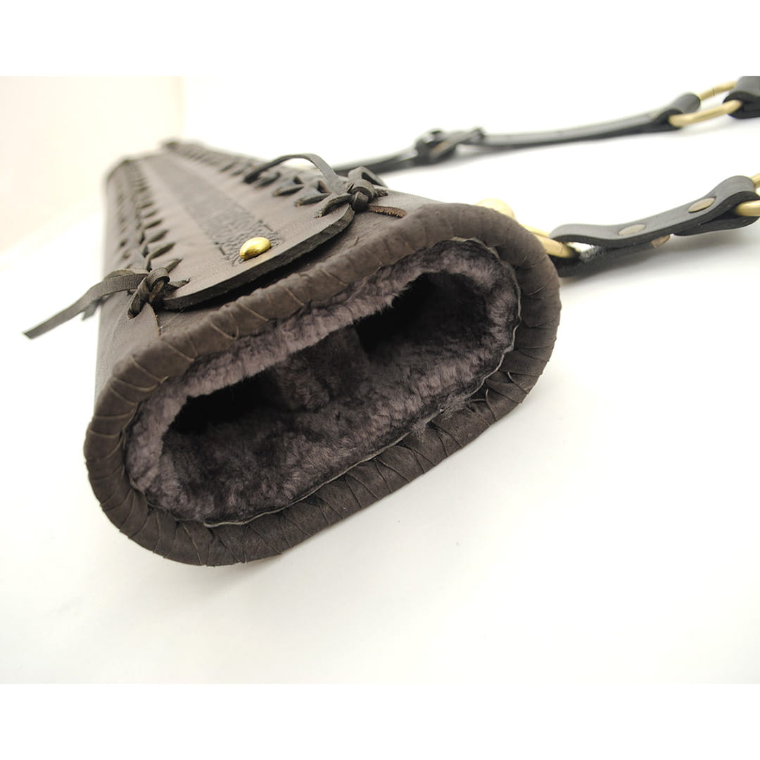 - Kołczan jest na całym obwodzie ręcznie pleciony rzemieniem, co znacznie zwiększa solidność jego konstrukcji