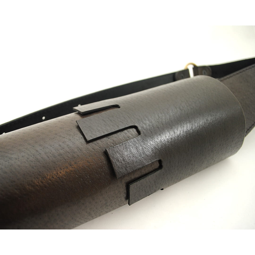 - Górna część kołczanu ozdobiona jest ręcznie plecionym rzemieniem i kołnierzem na wzór średniowiecznych baszt
