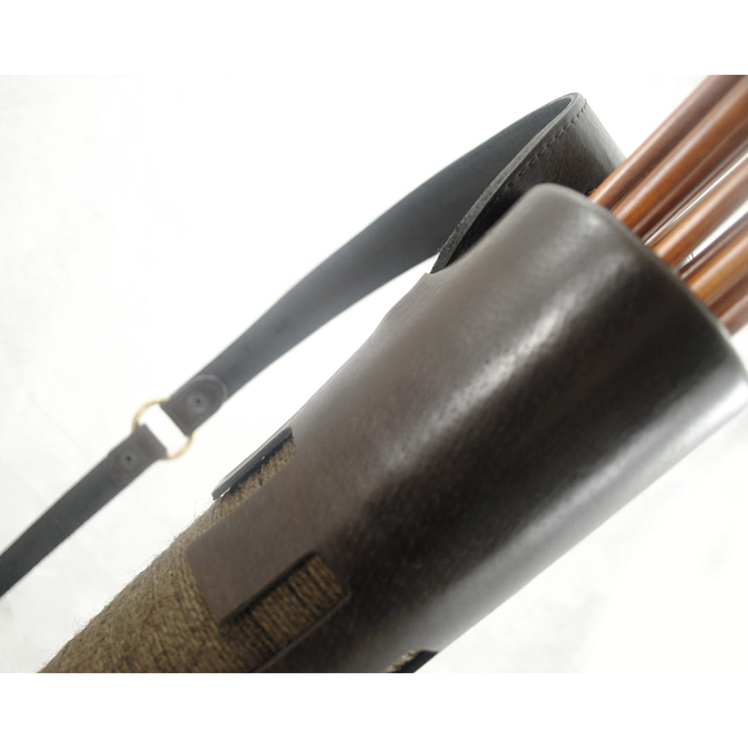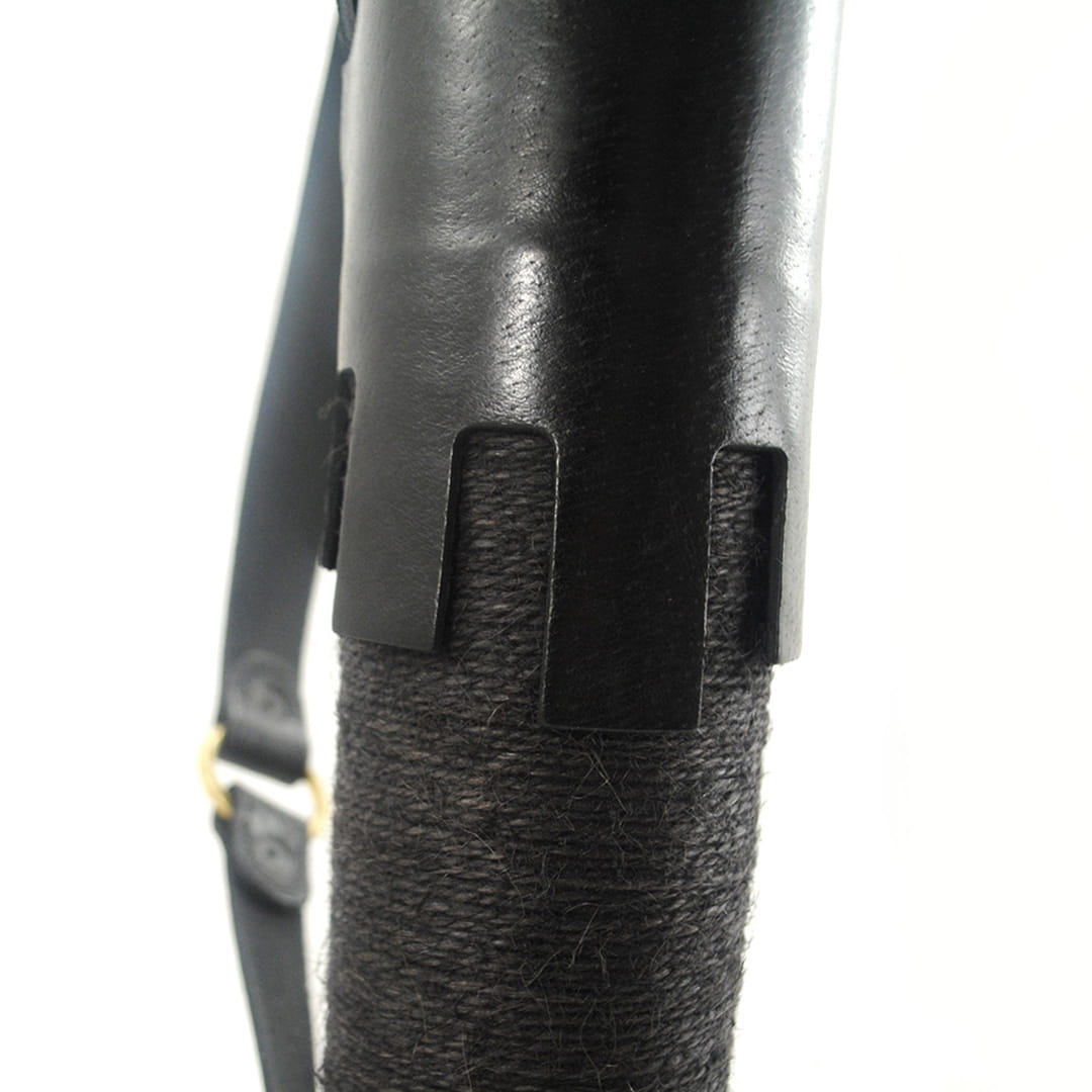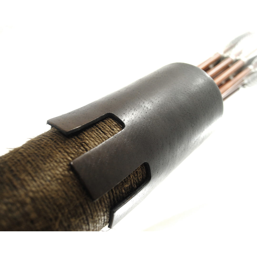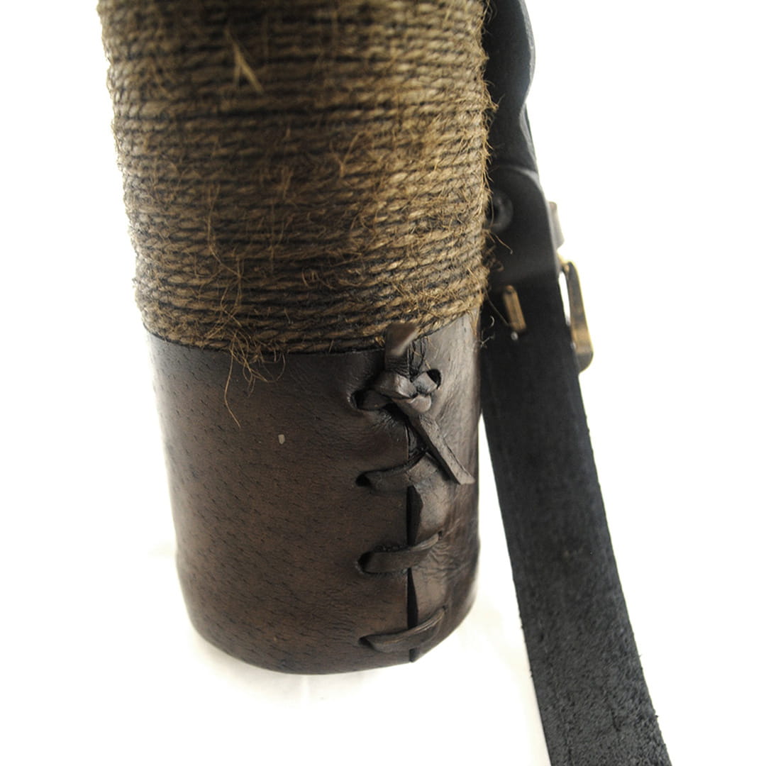 - Kołczan wykonany jest z naturalnej skóry i misternie nawiniętego ręcznie impregnowanego sznurka, który nadaje mu niepowtarzalnego wyglądu