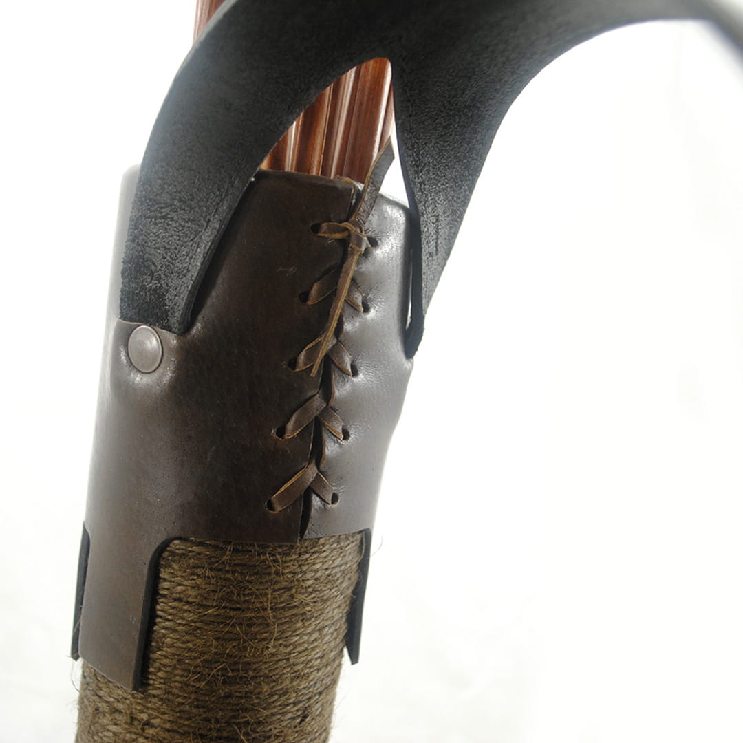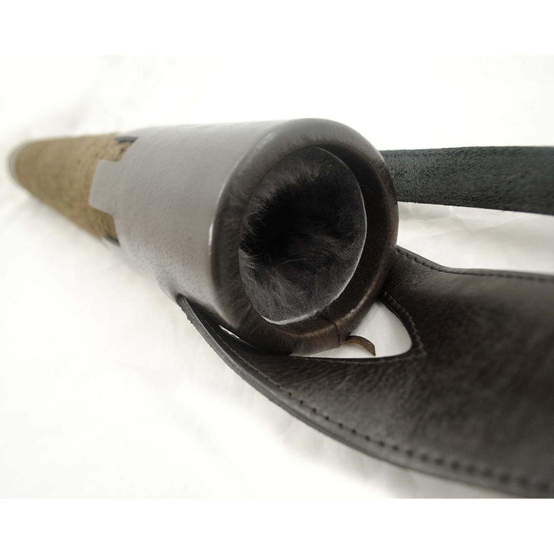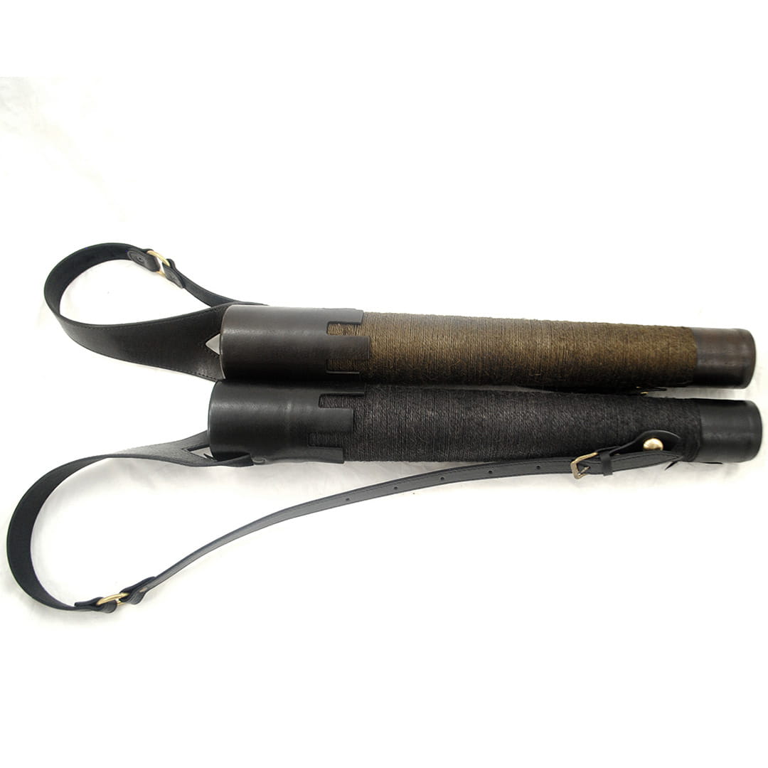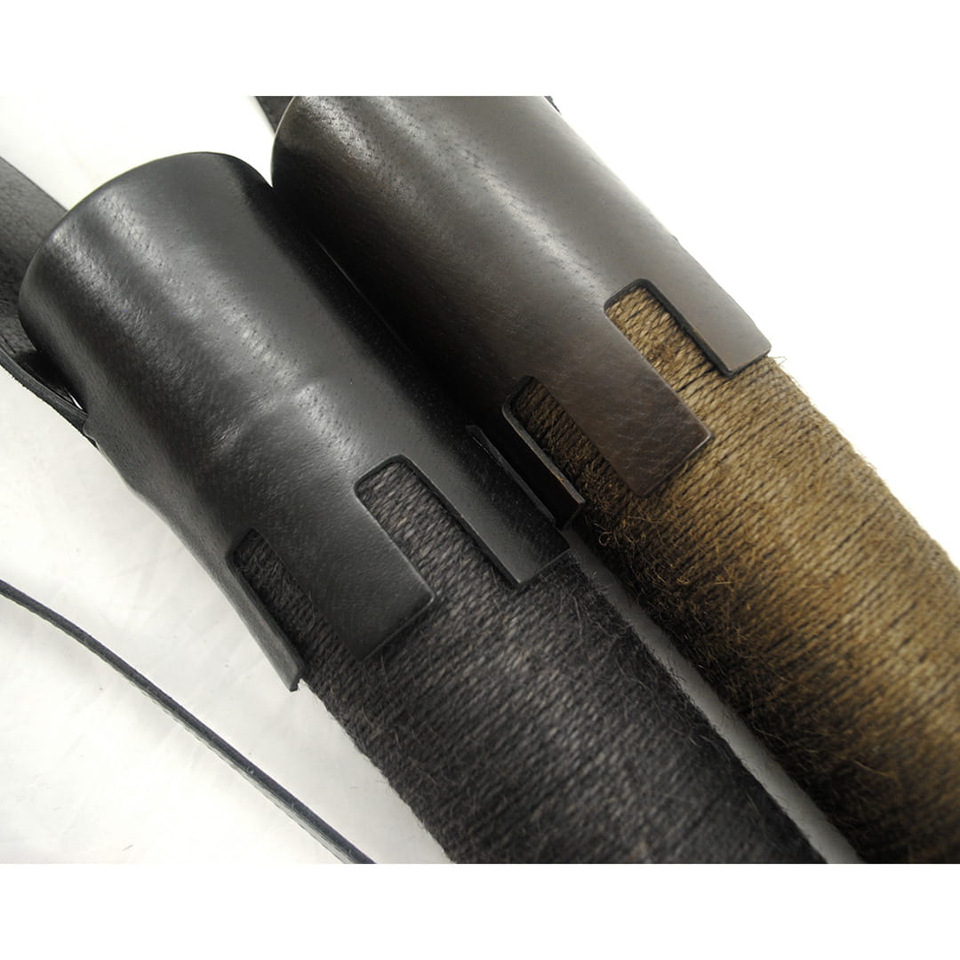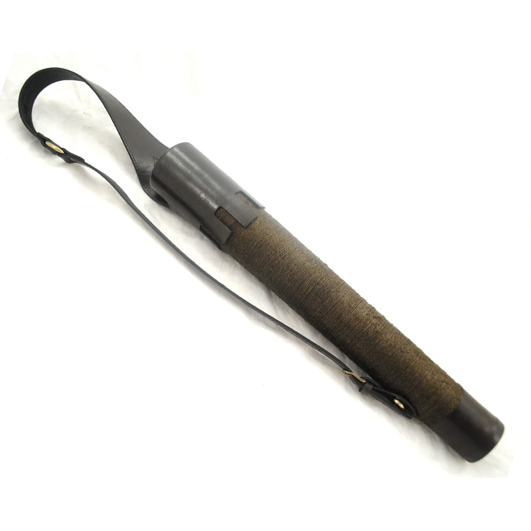 - Kołczan wykonany jest z naturalnej skóry i misternie nawiniętego ręcznie impregnowanego sznurka, który nadaje mu niepowtarzalnego wyglądu