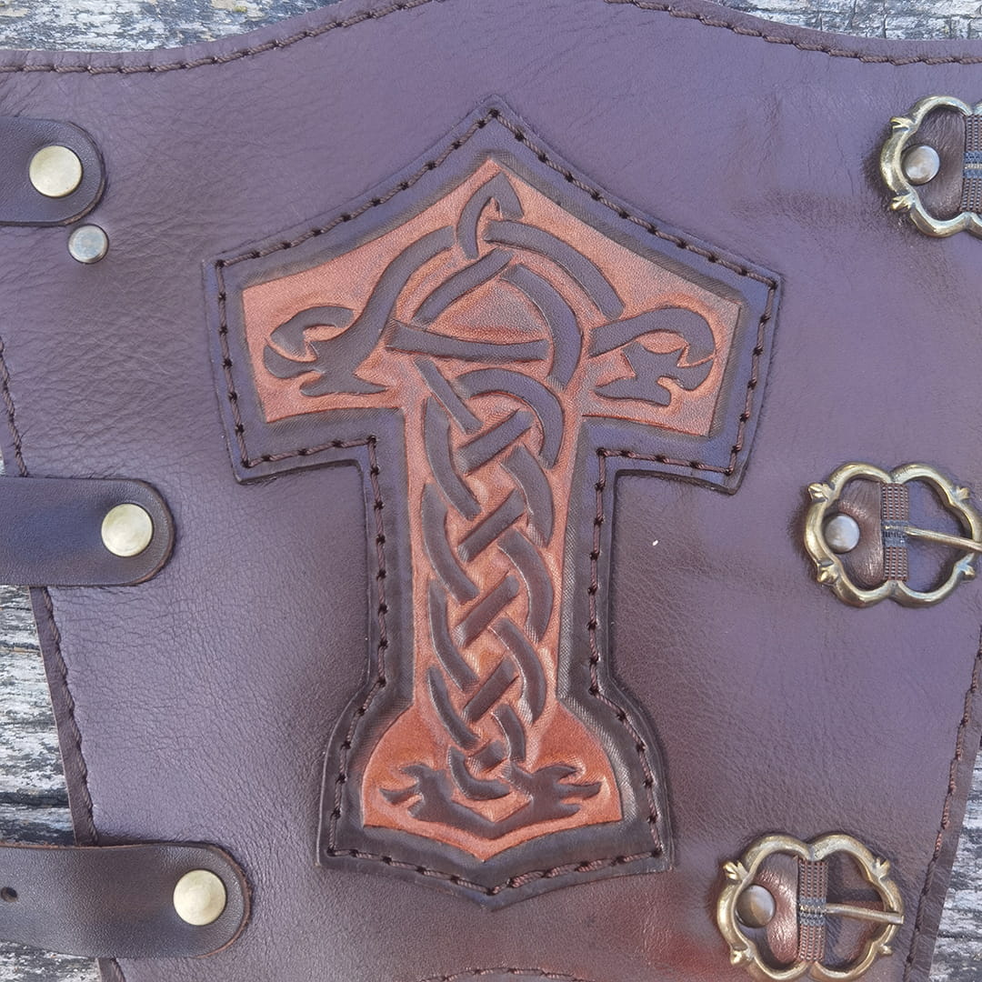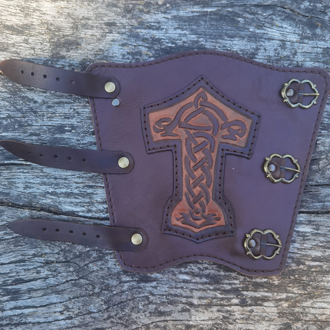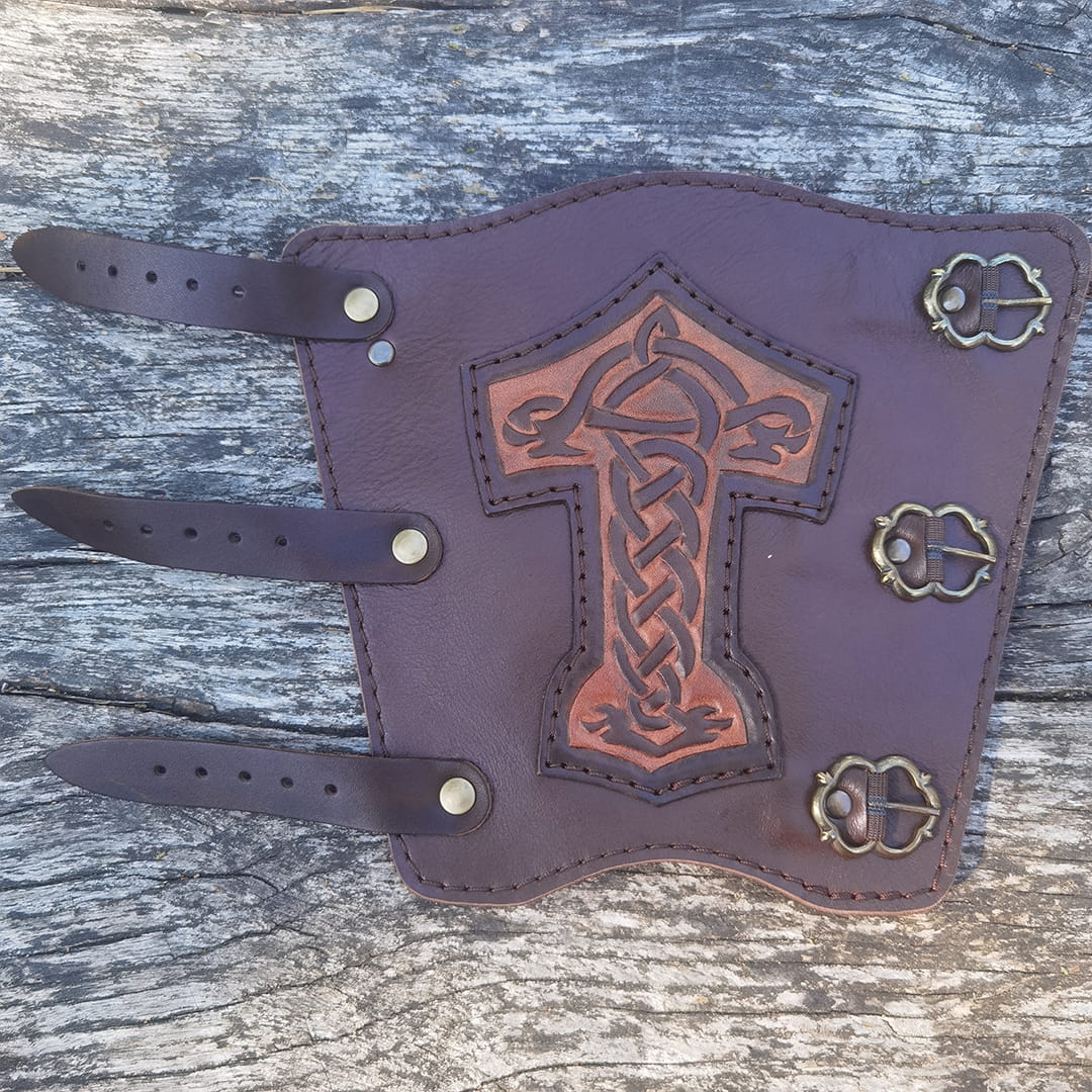 Ochrona przedramienia wykonana jest ona w całości z naturalnej, licowej skóry olejowej. Moczenie skóry w gorących olejach nadaje jej trwałości, sprawia, że staje się ona odporna na zagięcia i otarcia.