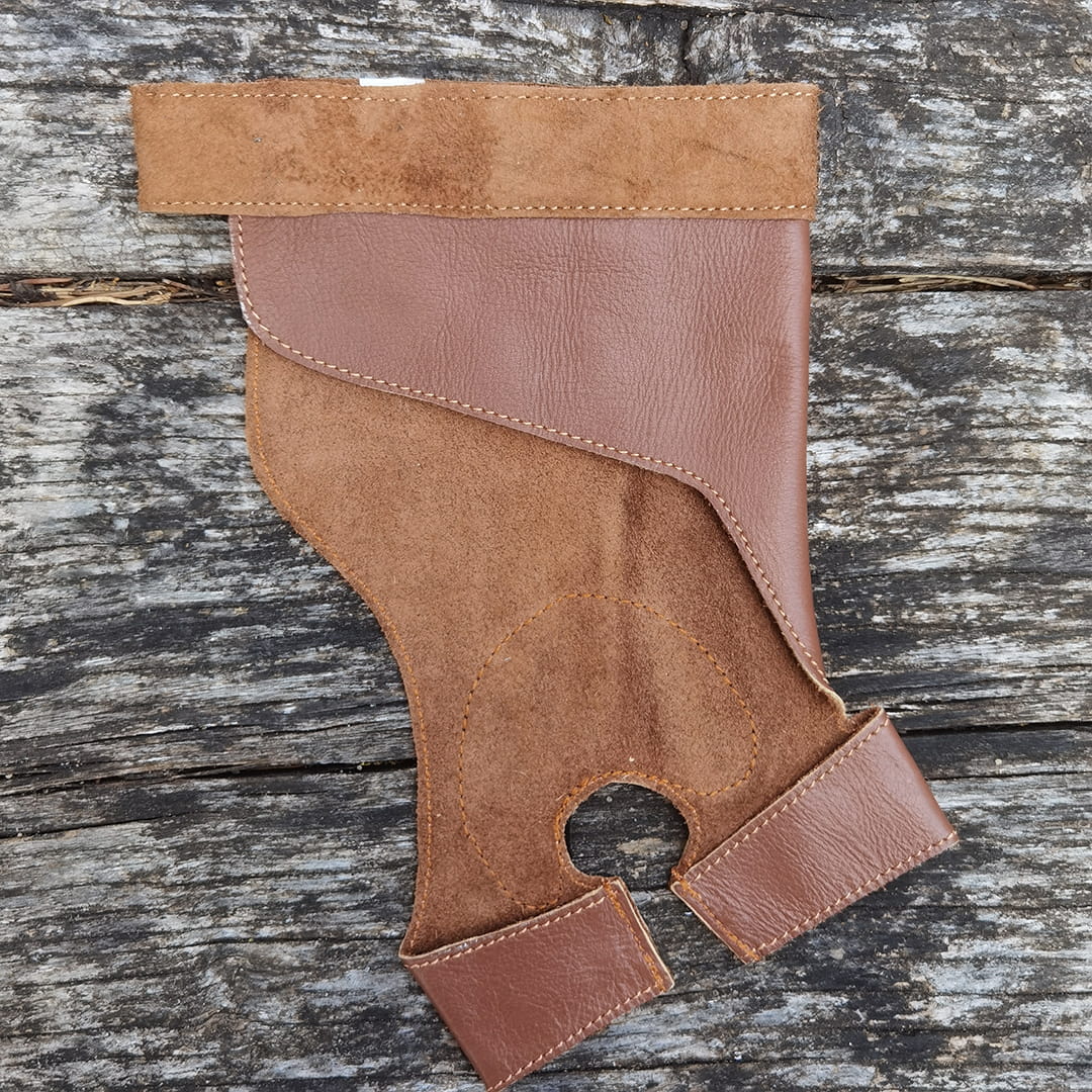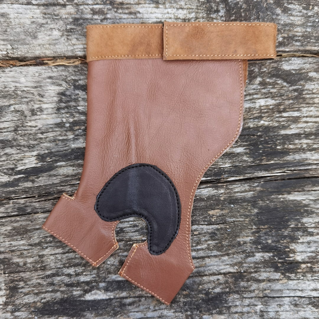Rękawiczka na rękę łuczną wykonana z wysokiej jakości skóry, która charakteryzuje się wysoką wytrzymałością i odpornością na uszkodzenia.