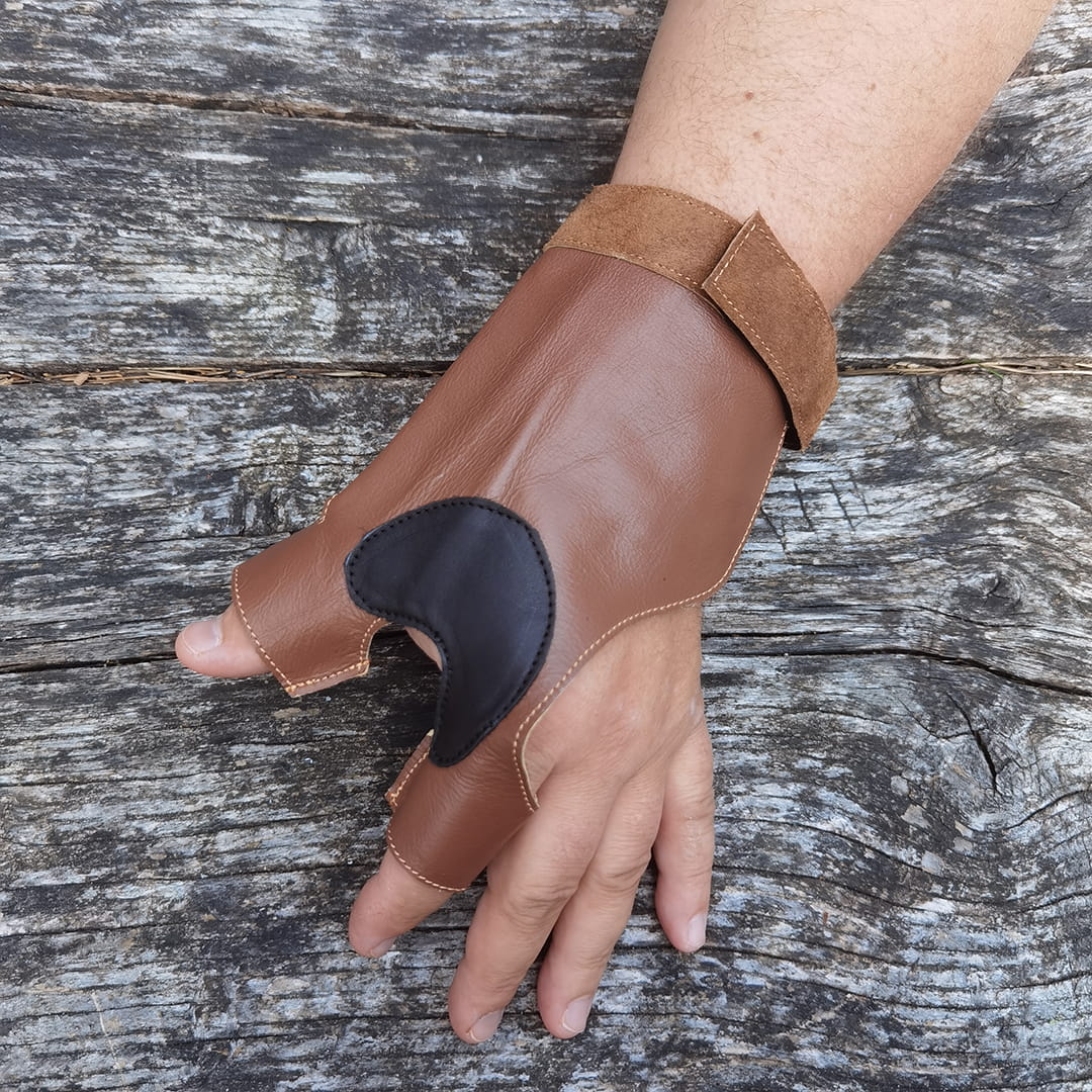 Rękawiczka łucznicza chroniąca rękę trzymającą łuk przed otarciem przez strzałę i lotki.