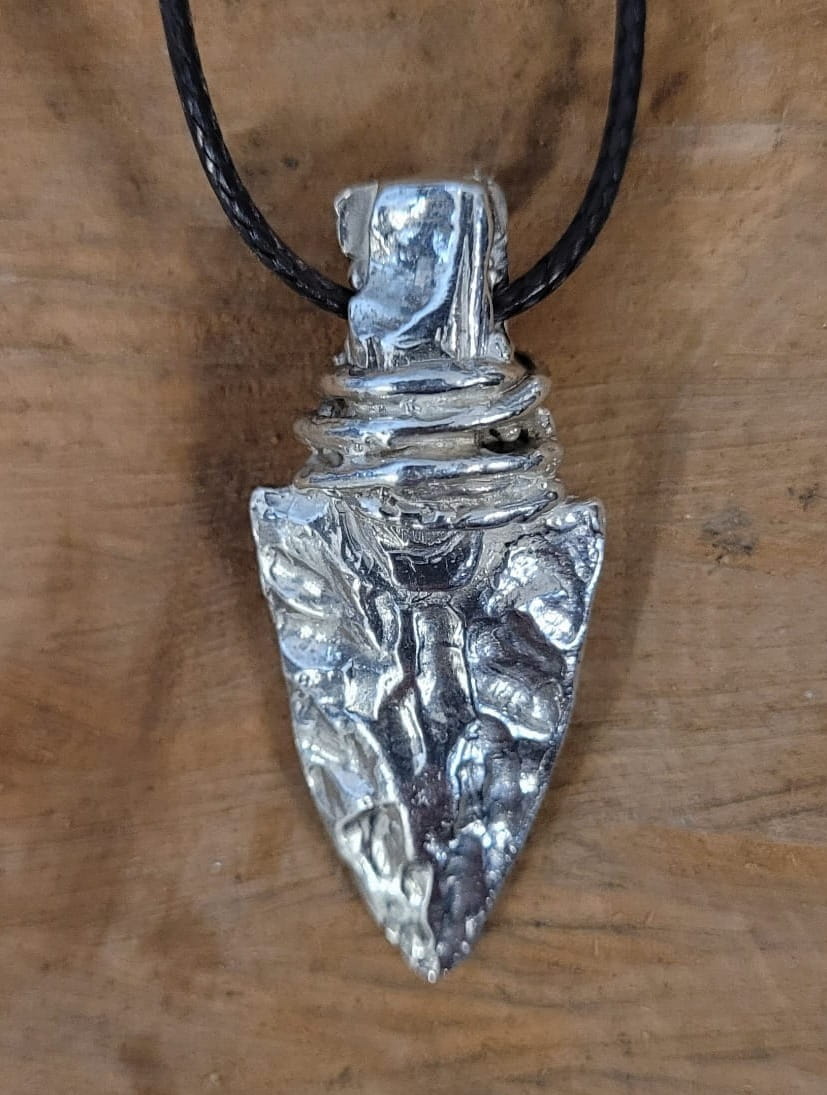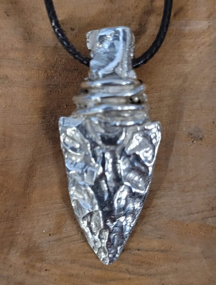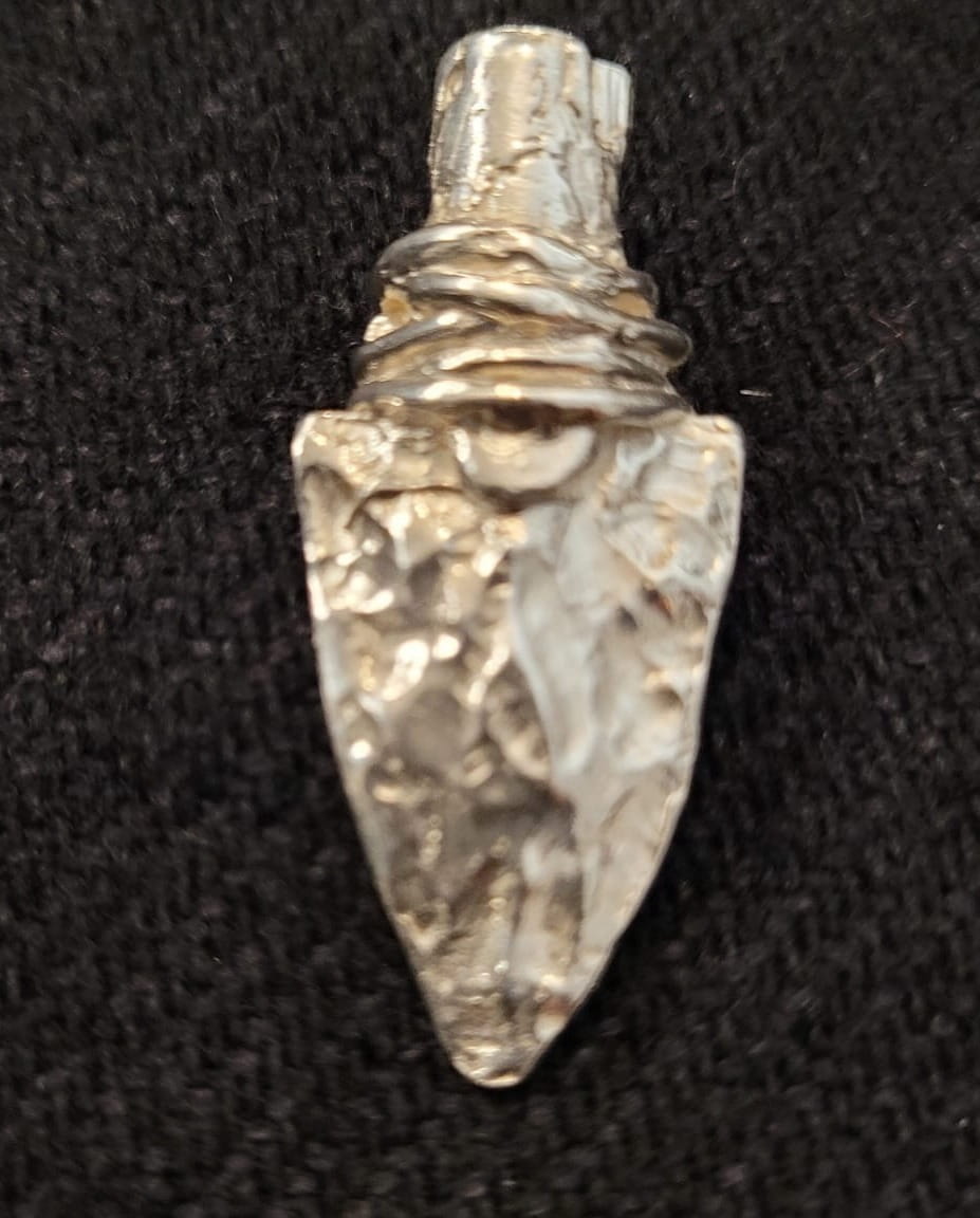 Srebrny wisiorek w kształcie grota.