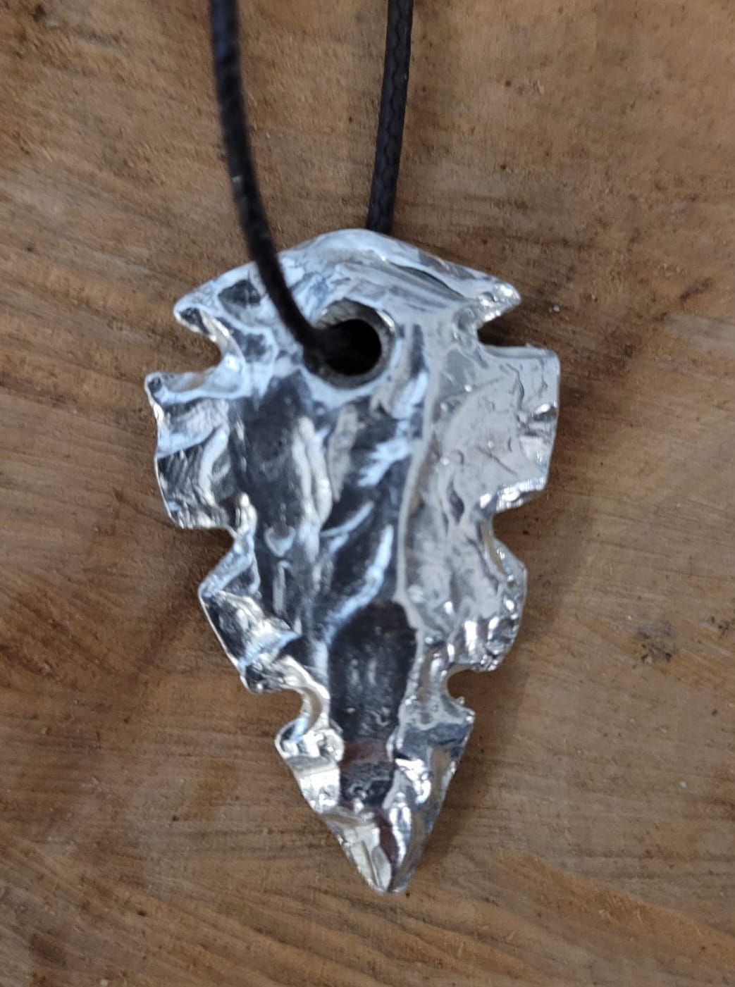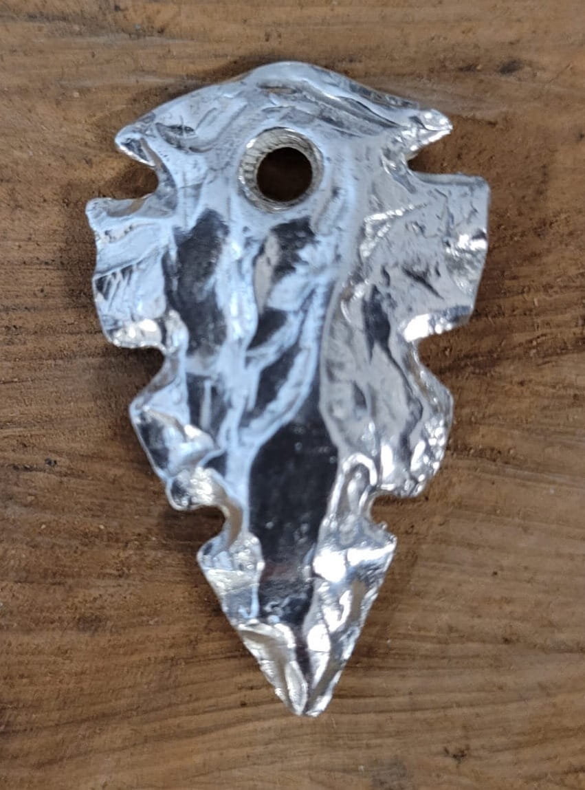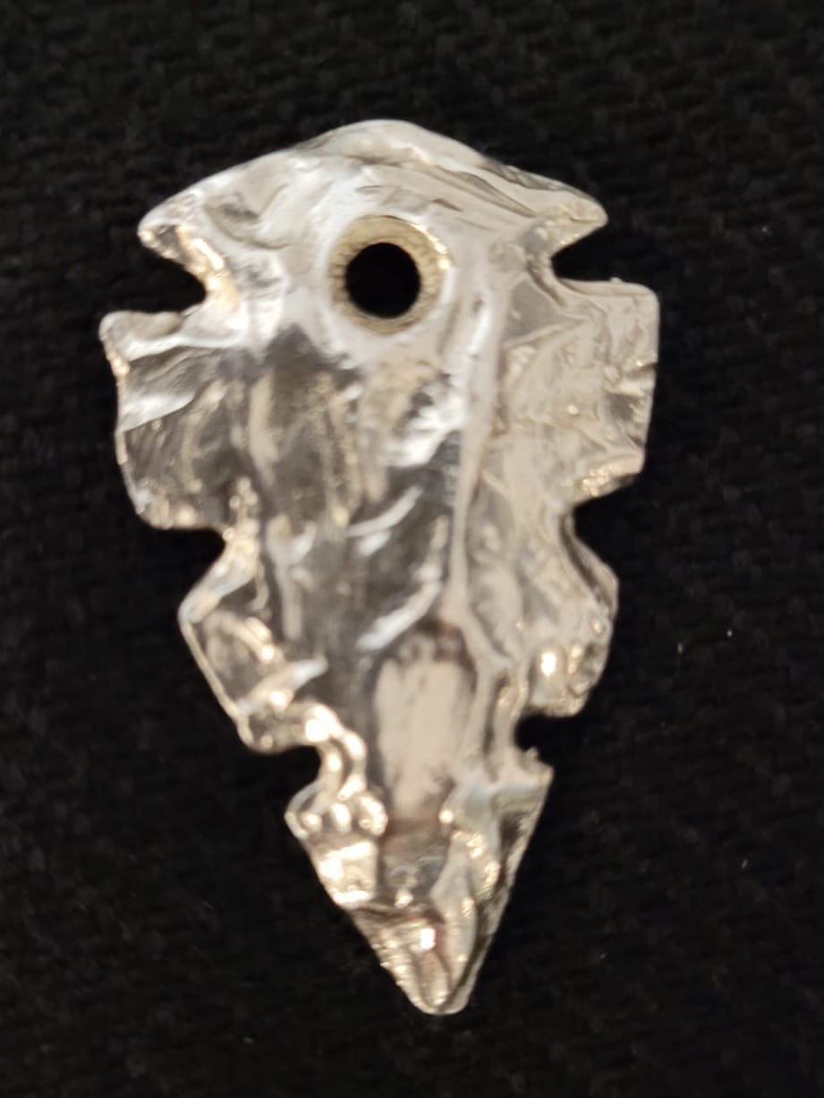 Srebrny wisiorek w kształcie grota.