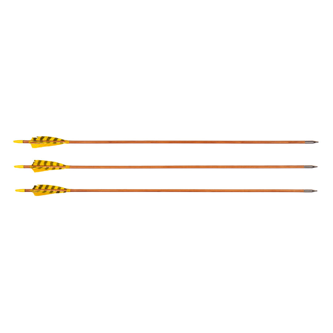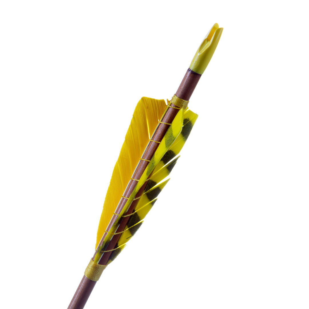 Promienie starannie dobrane pod względem spinu, wagi i usłojenia stanowią podstawę wytrzymałości i uzyskania odpowiednich parametrów technicznych strzały. Drewniane promienie, naturalne pióra indycze oddają charakter tradycyjnego łucznictwa. Plastikowa osadka.