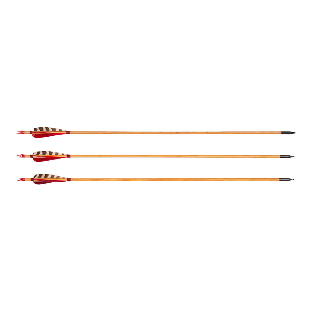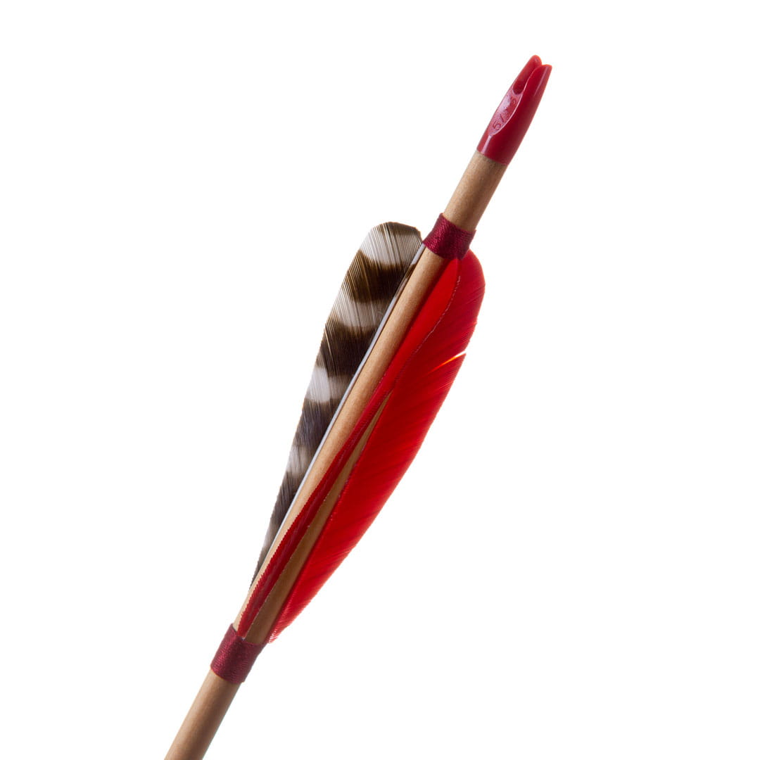 Promienie starannie dobrane pod względem spinu, wagi i usłojenia stanowią podstawę wytrzymałości i uzyskania odpowiednich parametrów technicznych strzały. Drewniane promienie, naturalne pióra indycze oddają charakter tradycyjnego łucznictwa. Plastikowa osadka.