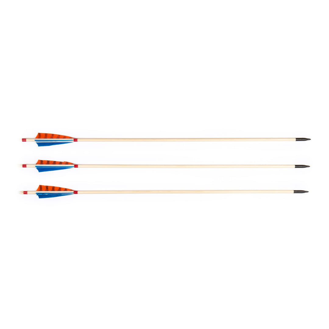 Zestaw 10 strzał drewnianych z lekkiego, gładzonego drewna świerkowego.