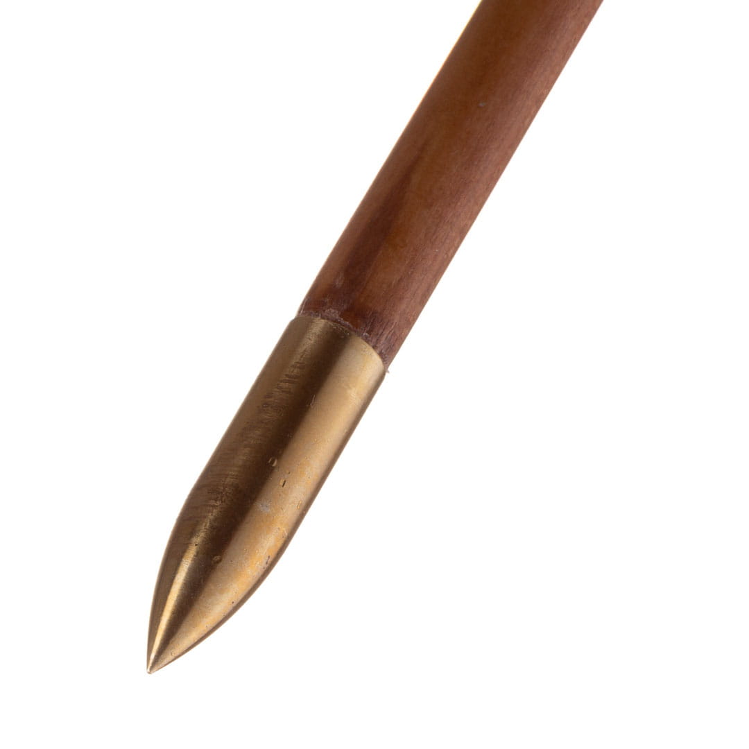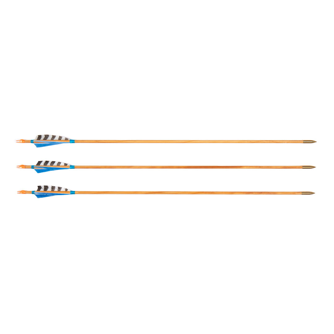 Promienie starannie dobrane pod względem spinu, wagi i usłojenia stanowią podstawę wytrzymałości i uzyskania odpowiednich parametrów technicznych strzały. Drewniane promienie, naturalne pióra indycze oddają charakter tradycyjnego łucznictwa. Plastikowa osadka.