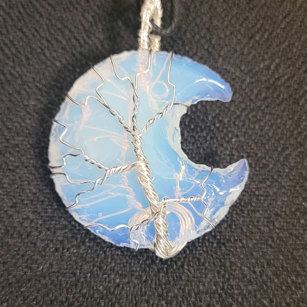 Ręcznie wykonany wisiorek z opalitu w kształcie lunuli z drzewkiem życia.