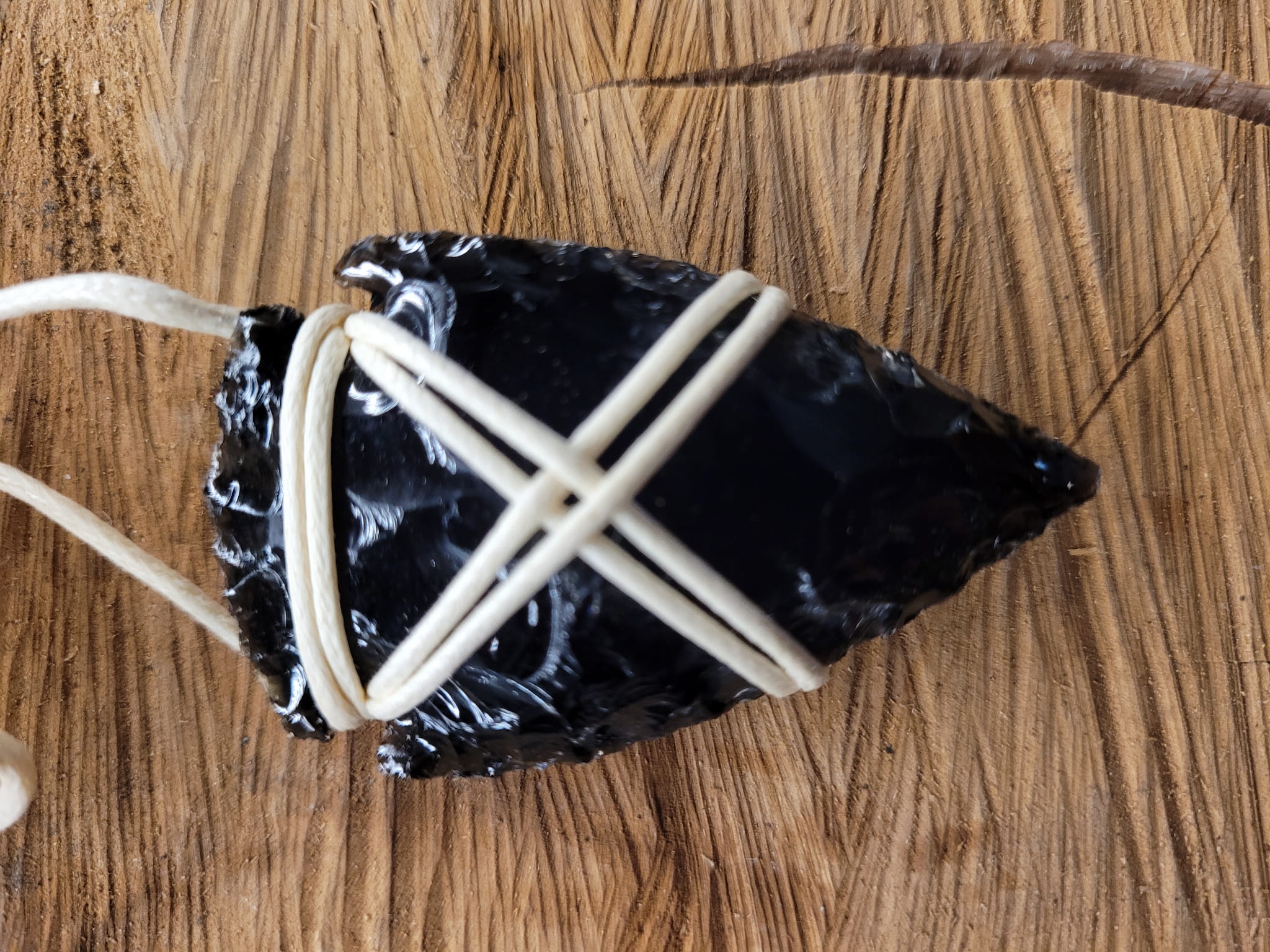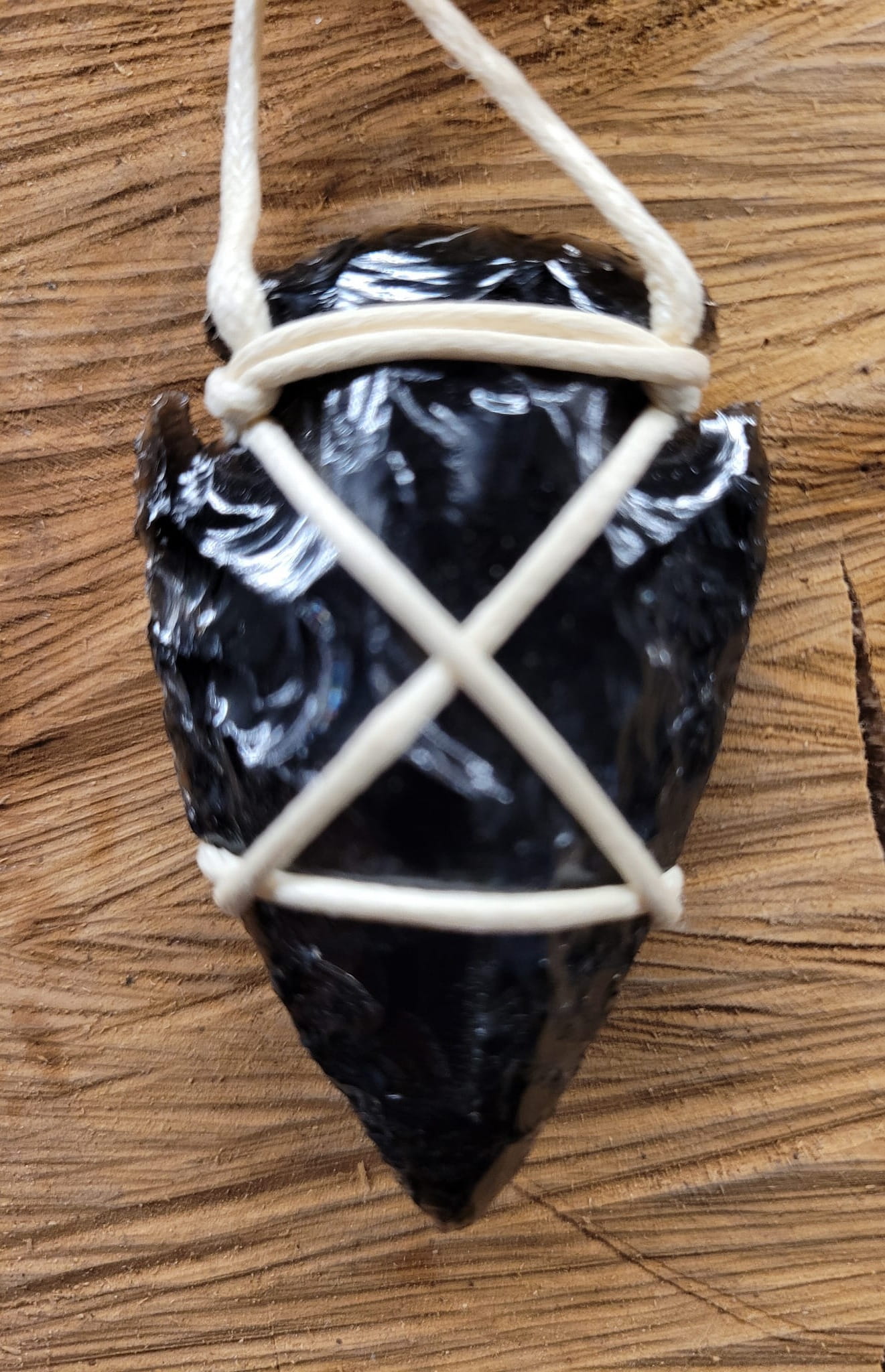Wisiorek w kształcie grota z obsydianu