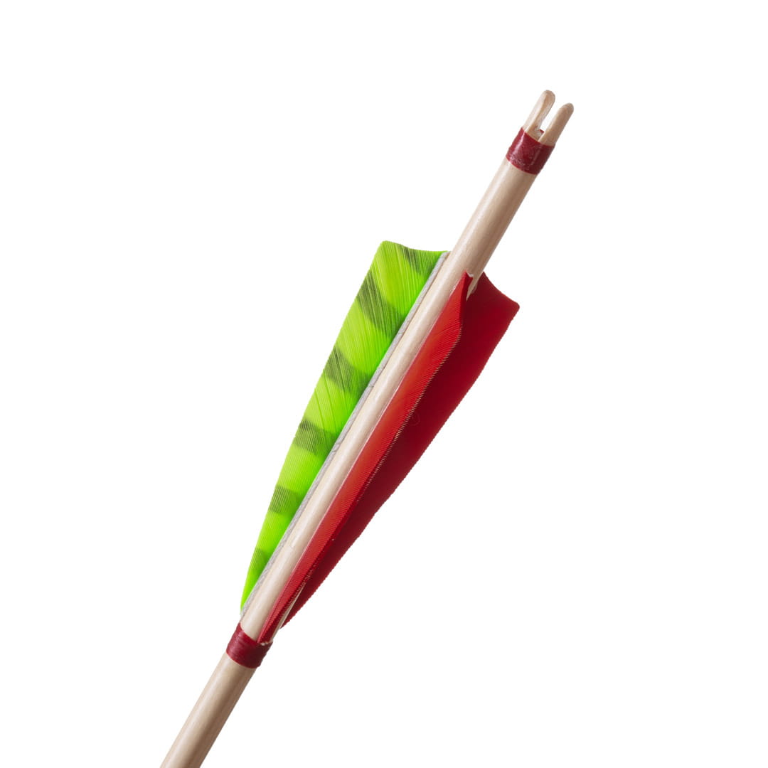 Promienie starannie dobrane pod względem spinu i usłojenia stanowią podstawę wytrzymałości i uzyskania odpowiednich parametrów technicznych strzały. Drewniane promienie, naturalne pióra indycze oraz osada wycięta w promieniu oddają charakter tradycyjnego łucznictwa.