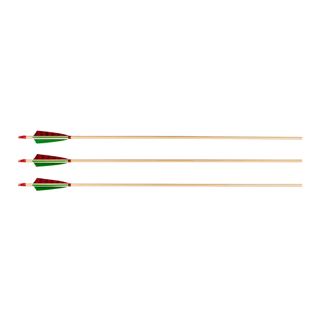 Drewniane promienie, naturalne pióra indycze oddają charakter tradycyjnego łucznictwa. Plastikowa osadka firmy Bohning posiada oznaczenie lotki prowadzącej, co ułatwia odpowiednie nakładanie strzały na cięciwę.