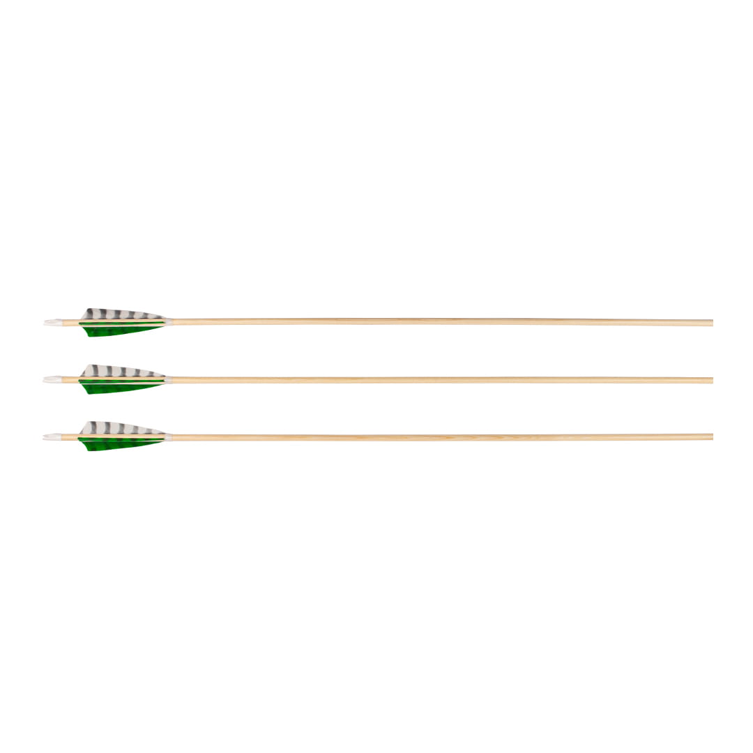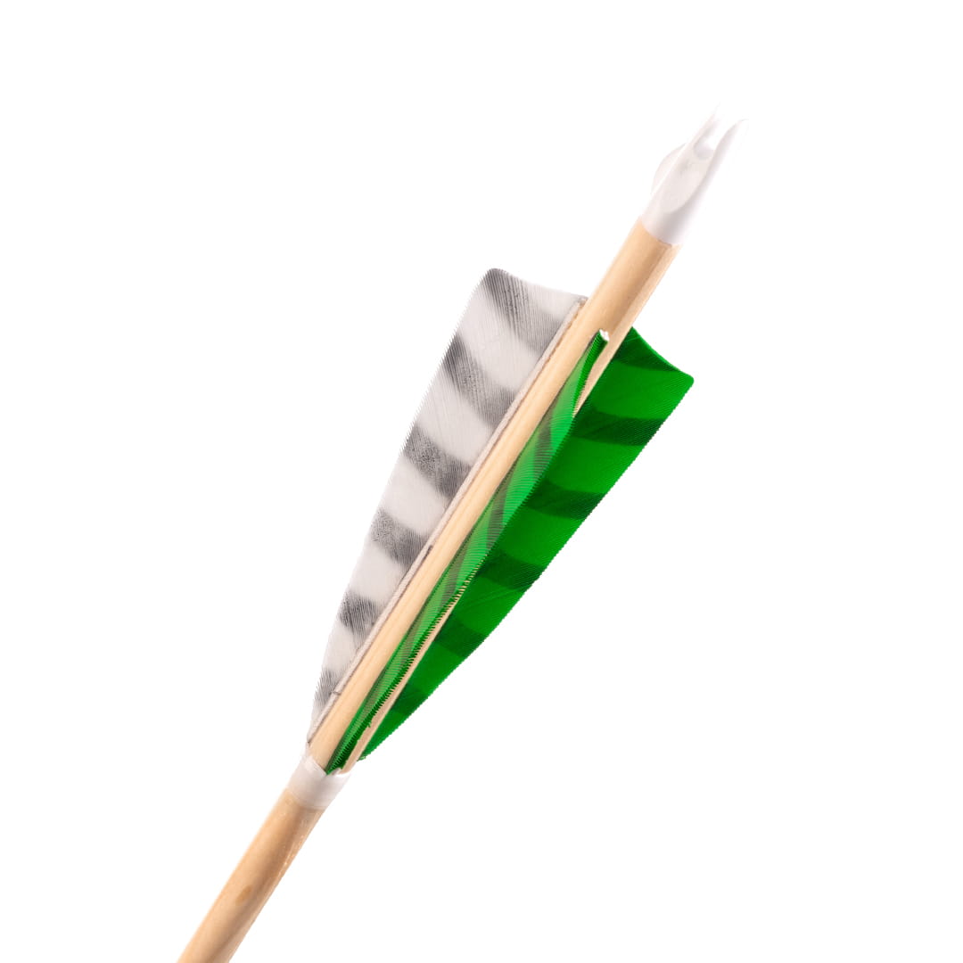 Promienie starannie dobrane pod względem spinu i usłojenia stanowią podstawę wytrzymałości i uzyskania odpowiednich parametrów technicznych strzały. Drewniane promienie, naturalne pióra indycze oddają charakter tradycyjnego łucznictwa. Plastikowa osadka firmy Bohning posiada oznaczenie lotki prowadzącej, co ułatwia odpowiednie nakładanie strzały na cięciwę. Wszystkie trzy pióra w tej wyjątkowej strzale są paskowanymi, dwukolorowymi pięknościami typu Barred.