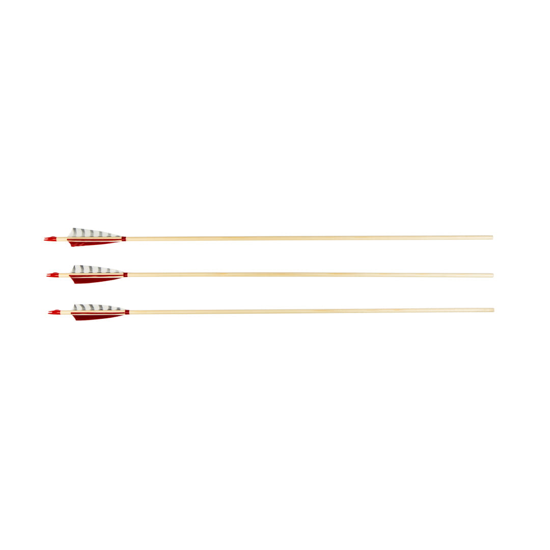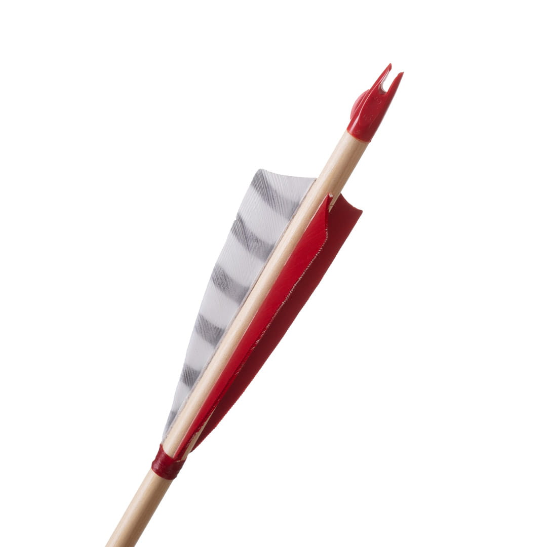 Drewniane promienie, naturalne pióra indycze oddają charakter tradycyjnego łucznictwa. Plastikowa osadka firmy Bohning posiada oznaczenie lotki prowadzącej, co ułatwia odpowiednie nakładanie strzały na cięciwę.