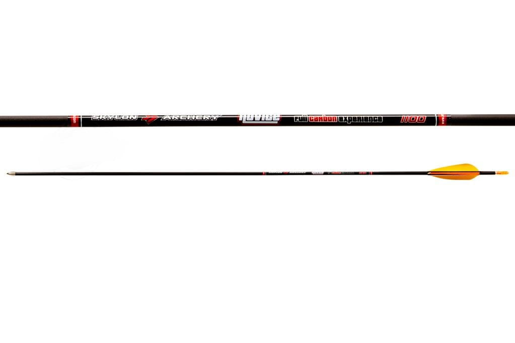 Jest to kompletna strzała karbonowa w spinie 1100, o średnicy wewnętrznej 4,2mm, długości 28", oklejona naturalnymi piórami 3"  i zakończona stalowym grotem typu Bullet o wadze 70grainów.